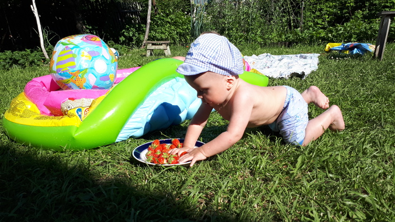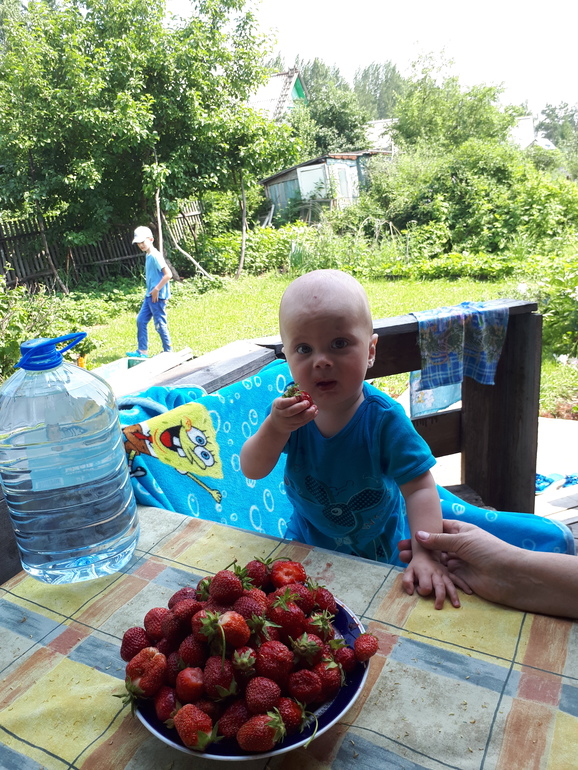 Из новых продуктов в этом месяце ввели: творог (сама варю из кефира), овсянка,клубника (очень понравилась), немного малины,морковка. Всё отлично прижилось.Творог только сначало не особо пошёл.Сначало покупала детский творожок Медвежонок.Но малыш начал срыгивать им и видно что животик беспокоил. Убрала магазинный и стала сама варить.На свой реакция лучше и по вкусу ему больше понравился. Но всё равно тяжеловато.Даю его не каждый день,а через день.