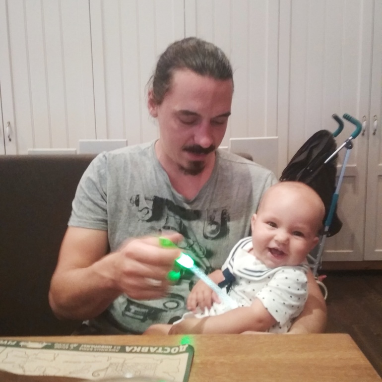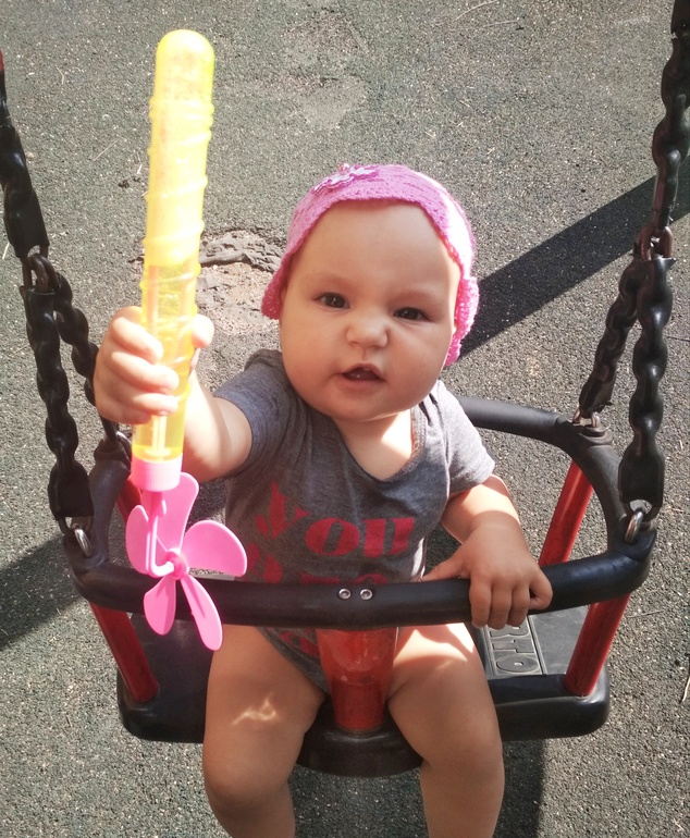 Из игрушек любимая пирамидка деревянная, потому что ее можно разобрать и частично поместить в рот. И палочка с мыльными пузырями, потому что можно ехать в коляске и махать ей.