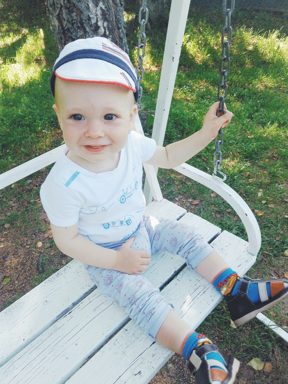 -показывает пальчиком на проходящих мимо людей, животных, на деревья, вобщем на все, что ему интересно, так мило...очень любит, когда с работы приходит дедушка, забраться на ручки и пальчиком показывает, куда хочет, чтобы дед его нес))) по-прежнему очень жаждит общения с детьми, один раз с нами останоовилась и пообщалась бабушка с девочкой в коляске ровесницей Германа, так мило они трогали друг друга за ручка, на этом все, приедем в Наро-Фоминск будем активно гулять на детских площадках, т.к в Торжке их просто нет.