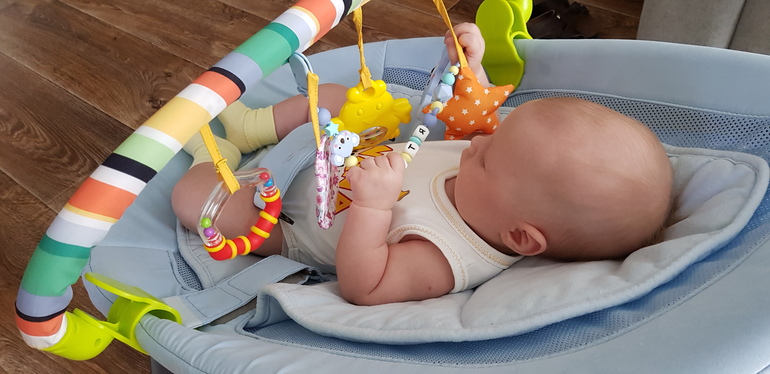 Димулька наел щёчки и ляшечки,заметно вытянулся.На приеме были во вторник,получили прививки Пентаксим и Гепатит Б.Перенесли отлично,правда был немного сонный,главное без видимых реакций.Рост 65,вес 6700.Что умеем?Из нового это начал смеяться,но расмешить нужно постараться.Наконец то начали держать головку лежа на животе,я думала не случится это чудо🙏🙏🙏,случилось!!!!Крутится-вертится,но поворачиваться на животик самостоятельно не получается,от чего может распсиховаться👹.Ручки теперь наше всё,хватает игрушки,держит и всё тянет в рот.Больше всего любит свой кулачок))))✊Теперь может остаться на некоторое время один в кроватке и наблюдать за мобилем,в шезлонге покачиваясь смотреть мультики,а вот коврик всё так же не в почете.Играем с ним в прятки,ладушки,делаем зарядку,когда у него замечательное настроение можем очень долго развлекаться.Характер у Мити мужской и типичный для тельца- требующий внимания,нежности и ласки,очень чувствует смену моего настроения. Упрямство единственная отрицательная черта характера тельца, которая у него уже проявляется))))) Надеть кофточку,бодик или заставить пить,лежать или спать не могу,если Митька сам этого не захочет.Если мне все таки удастся настоять на своем(конечно же сейчас удается) он тут же багровеет и плачет,вернее поднимает ор такой что хочется перестать делать что то против его воли и желания. Все должно быть во время и с учётом желания))))),вот и угадываем что не так и что не нравится этому маленькому крикуше в определенный момент. Прогулки на улице стали короткими,сынок не хочет лежать в коляске,причиной этому думаю положение его в коляске.Т.к. коляска прогулочная,ручка не перекидывается,малыш меня не видит от чего ему становится страшно ли,скучно ли,но то что проявляется недовольство это факт.Я этот момент почему то даже не учла при покупке коляски.Покупать ещё одну я если честно не вижу смысла,но и гулять таким образом не дело. Режим такой же как и в 2 месяца: ночью спит хорошо,днем по 30-40 минут,бодорствует по 1-1.5ч,кушает исключительно тити.