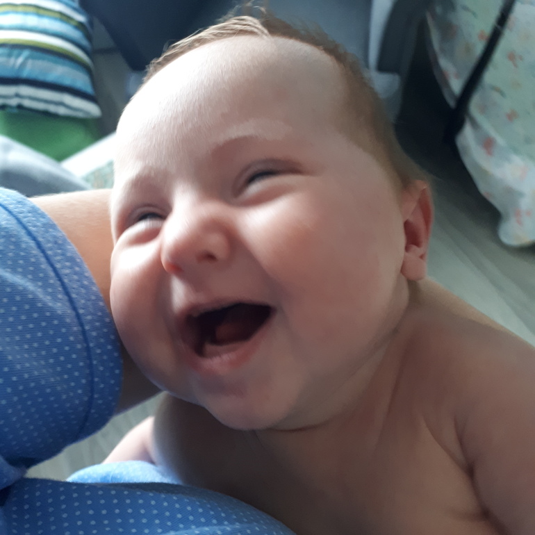 С каждым днем я все больше и больше влюбляюсь в сына ❤ Особенно когда он просыпается утром или днем, видит меня и сразу начинает улыбаться, смеяться (конечно это еще пока не прям смех, но очень похожие звуки). Я визжать от восторга готова 😊, улыбаюсь и смеюсь ему в ответ, говорю с ним, от чего Лев становится еще более счастливым 💥 Он прям щекастый смеяшка-улыбашка 🤣