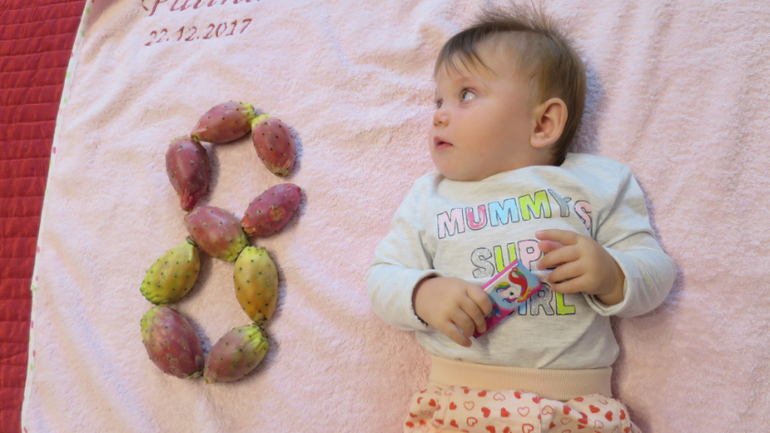 Отчёты по месяцам22 августа моей малышке исполнилось 8 месяцев. Время бежит, и я за ним не успеваю. 8 месяцев прошли как один день, вот не давно Поля была совсем крохотулечкой, а сейчас весит 9,5 кг и 74 см. Носим одежду 80 р-ра.