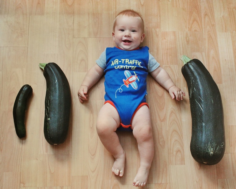 Обед: овощное пюре 150-170 гр (кабачок, брокколи, цветная капуста) с льняным маслом. Вообще время обеда у нас относительное. Чаще это ужин:). Нам так удобнее. Я могу уйти гулять куда-то с Марго, оставив мужа с сыном без проблем. Как-то недавно даже впервые с рождения Аркаши уединились с мужем в ресторане вечером, оставив детей и кабачковое пюре бабушке на пару часиков:). Соседи Аркашу кстати активно урожаем угощают. Поэтому готовлю по максимуму всё сама.