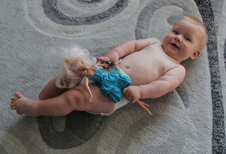 Совсем он иной, чем Маргарита:). Она более взрывная, шумная, как я. Аркаша к папе ближе. Тихо и упорно делает, что считает нужным. Если Аркаша в голосе - значит, что-то явно не так: хочет есть, переодеться, спать... Может долго сам с собой играться, что для меня дико. Марго этому навыку до сих пор не поддалась. Может, просто у него нет выбора, а может, действительно, это врожденное. Говорят, муж таким же был.