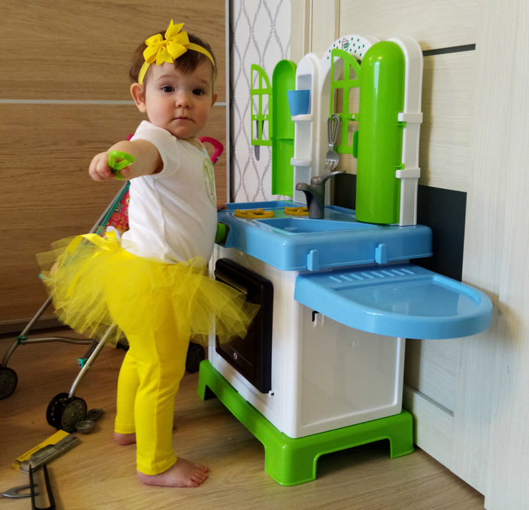 Бизиборд есть, два и в разных вариациях. А занят ребенок сейчас медведем Тедди Chicco) Вручили на ДР в год пару недель назад, пока с ним не расстается)) Двуязычный товарищ, переключаться можно между русским и английским. Счету учит, песенки поет, фразы разные произносит. Дите за ним повторяет. Ну и так.. спит тебе с дочкой в одной кроватке. Заяц, которого подарили на рождение, уже истрепался))) Заменили на медведика.