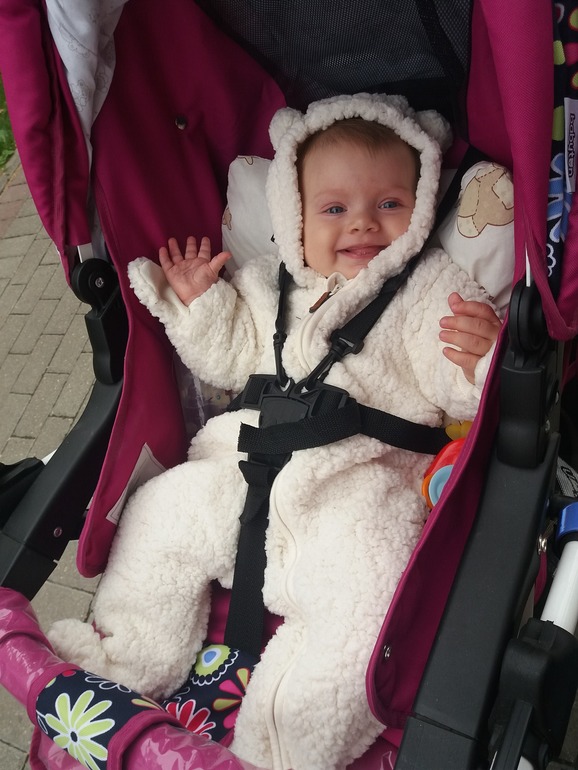 Ещё ныть начинает, когда у неё не получается встать. Наш милый папа брал Валю за ручки и ставил, хоть я его просила так не делать. Она просекла, что сверху вид лучше, и теперь карабкается вверх по любой вертикальной поверхности. Если дать ей руку, может встать и радостно шататься. Сидеть тоже научилась незаметно как-то. Ползает вперёд и назад, но если упрётся в стенку, начинает ныть) Как истинный ревизорро, может найти куски пыли там, где я только что помыла. Совершила полёт с дивана, но обошлось громким криком и шишкой на лбу.
