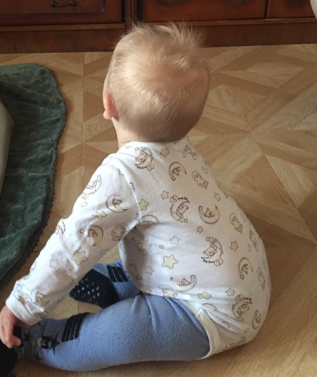 Физическое развитиеСадится вот так сам с четверенек, садится постоянно. Но прямо спину ещё не может выпрямить сам и держать