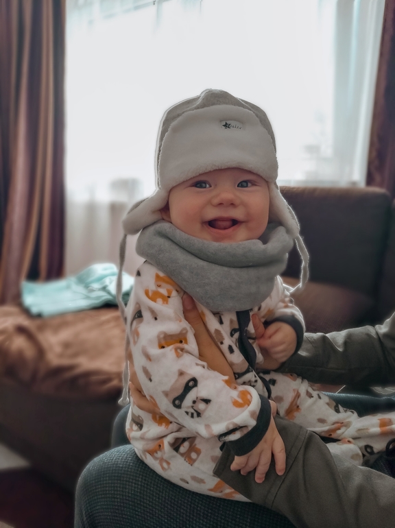 Купите флисовый плртный или шерстяной комбез и чтобы ножки и ручки поворачивать. Jako-o, finkid, disana делают такие. А под них уже по ситуации одевать. Шапка классная но по мне зимняя