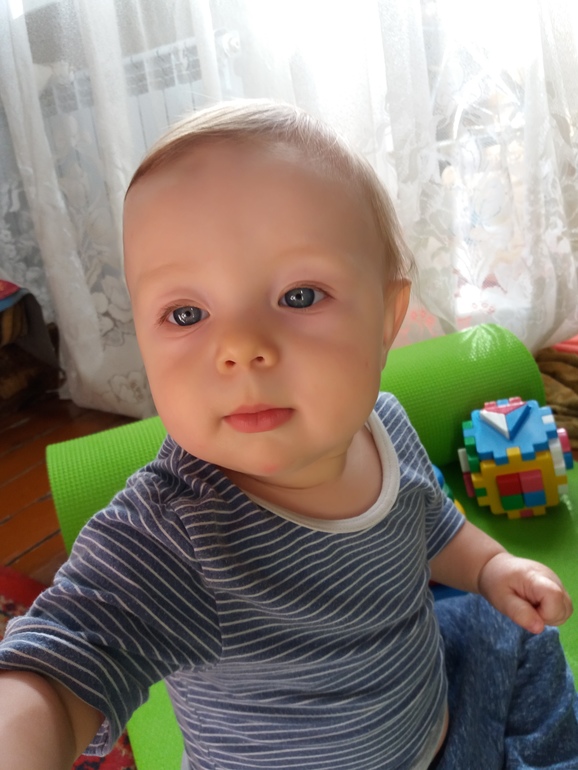 К 9 месяцам Ванюша стал просто мега активным) Ползает со скоростью молнии!) За ним бегать не успеваю, догоняю уже в другом конце квартиры.