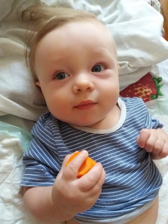 Кушает очень много чего. Овощи (цв. капуста, морковь, кабачок, картофель, броколи), фрукты (яблоко, груша, банан, абрикос, персик), ягоды (малина). Фрукты и ягоды в основном в виде готовых пюре в дойпаках. Уже около месяца кушает отварную курицу (пару/тройку раз в неделю), очень понравилось) Также треть отварного яичного желтка добавляю в пюрешки. Кстати, овощные пюре делаю сама и Ванюша кушает их лучше чем покупные.