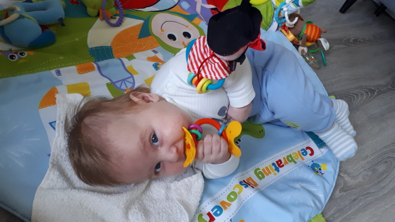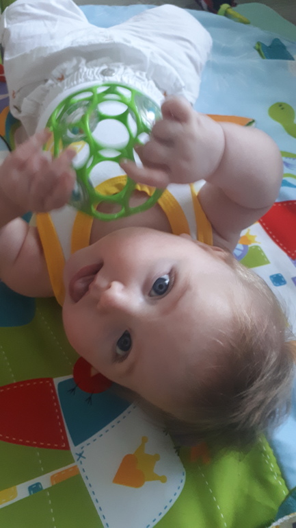 Делает какие-то попытки ползти, но в основном вокруг своей оси получается. Начинает интересоваться кошками🐈🐈И мне в рот заглядывать, когда ем 😁🥗 Гуляем один раз в день по 1-2 часа, на время 2 или 3 сна выходим.