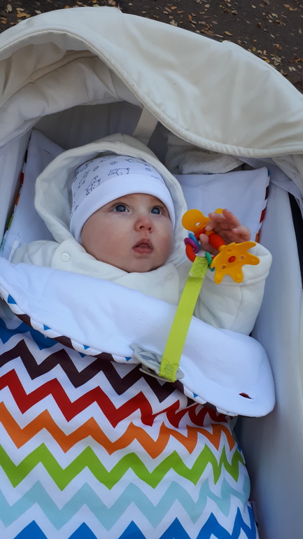 Сон портится, это факт. Дневные 40-минутки дома уже превратились в 25 и 30-минутки. И на улице нет того беззаботного сна, как был летом. Шапка и комбинезон бесят еще к тому же, пытается их съесть)
