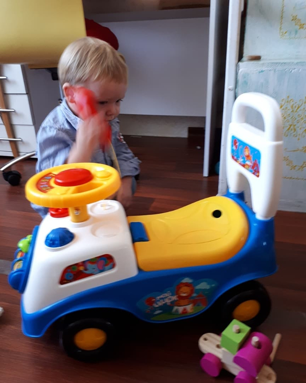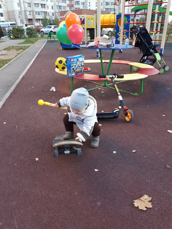 На др подарили ему от нас машину толокар (в дет мире акция -700р), куб сортер с крутилками, башня лабиринт с шариками), мама паровозик конструктор деревянный, брат везет бизиборд собственного изготовления, а от сестры курьера сегодня жду с лошадкой качалкой.
