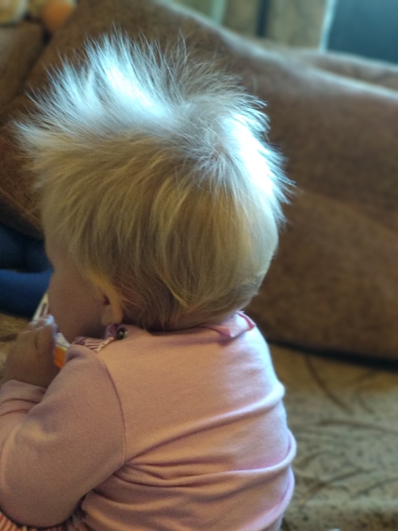 Мы в ванной мокрые ей тоже ёжиком делаем. Но это в ванной)) Ладно, пусть лохматится.