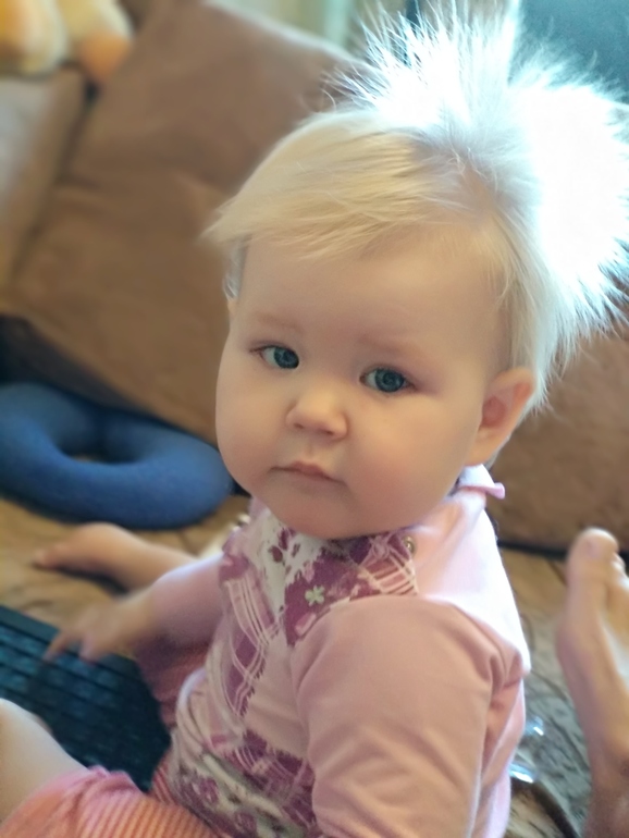 Ой какая мимимишность!!!! Да еще и блондинка! Очаровашка! И не надо ничего с этим делать! Это ж прическа!