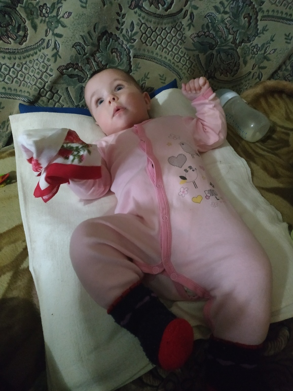 Я сейчас носочки сверху ещё на жёлтые штанишки (махровые, фото в посте) одела. Потом отошла кофе попить и позавтракать, Ева с бабушкой была. Подошла, а ручки потеплели уже, тепленькие...