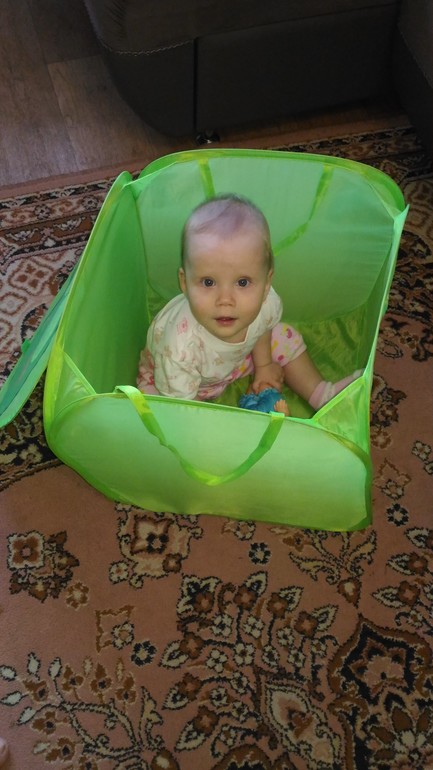 и пока ей не интересно сидеть просто так, лучше ходить. Да ходим мы за две руки но сейчас стала одну отпускать, берет что нибудь и тащит а второй держится и топает. Поэтому и ползать не хочет, подползет к моей ноге встанет и тянет руку мол давай пошли.))))