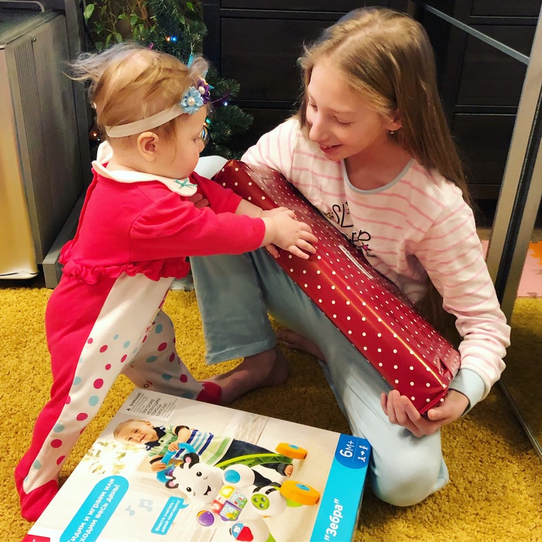 Подарки Златик получала на протяжении всего декабря 😂 Я покупала на Новый год и сразу вручала)) чтоб занять)) потом думала, ну надо же под елку что-то... опять покупала и опять вручала 😆 В итоге под елку упаковали только ходунки Зебру.