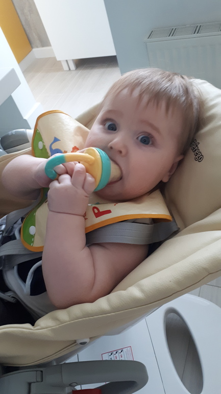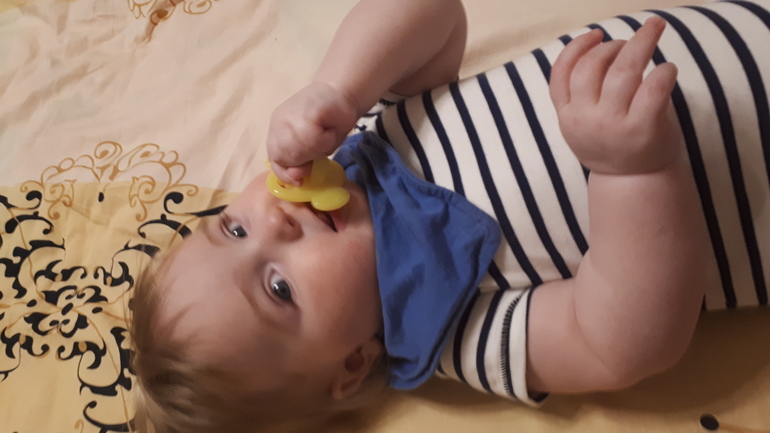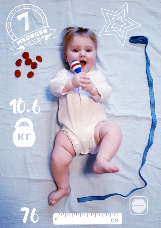 Отчёты по месяцамВ день своих 7 месяцев беззубик наконец-то смог постучать по погремушке первыми зубками - оба нижних резца одновременно вылезли (пока еще не полностью) 🤓
