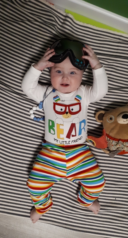 Одежду 👕👖носит разных размеров: некоторые штаны осиаются все еще р.68, так же есть пару рубашек и кофт этого же размера, комбезы и слипы - р.80, остальное - р.74, но уже пора доставать следующий размер, т.к. некоторая одежда р.74 стала мала. Носки и головные уборы без изменений - р.11/12 и р.44 соответственно.