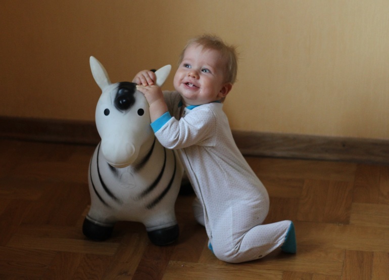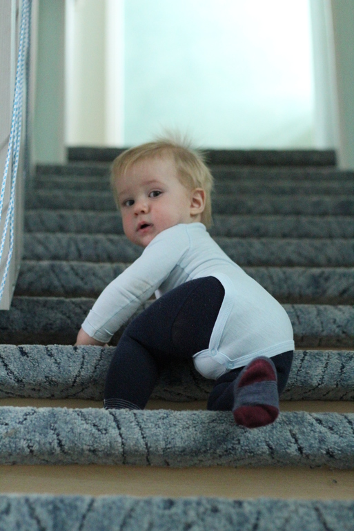 В связи с болезнью получился месяц регресса навыков:(. В 10 месяцев Аркаша уже отпускался от опоры, шагал за ручки и лихо лазал по лестнице на второй этаж 100500 раз в день. А потом... ослабленный и больной завис на ручках и после выздоровления долго отказывался с них слезать. Пришлось практически заново осваивать навыки. Сейчас опять бодро взбирается 18 ступенек на верхний этаж, за ручки может и прошагать все ступеньки. На ступеньках разворачивается, садится, но вниз не слезает.