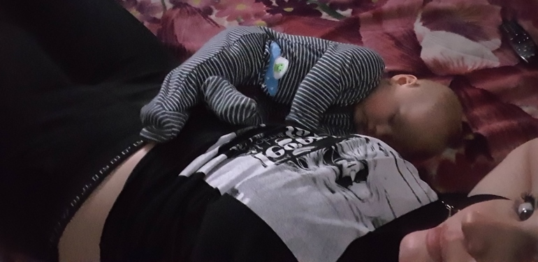 сейчас сижу за компом - после перекладываний из шезлонга в кокон и обратно (все на расстоянии вытянутой руки) отчаялась и переложила на колени к животу и груди. раскинулся и уснул.
