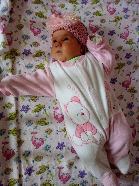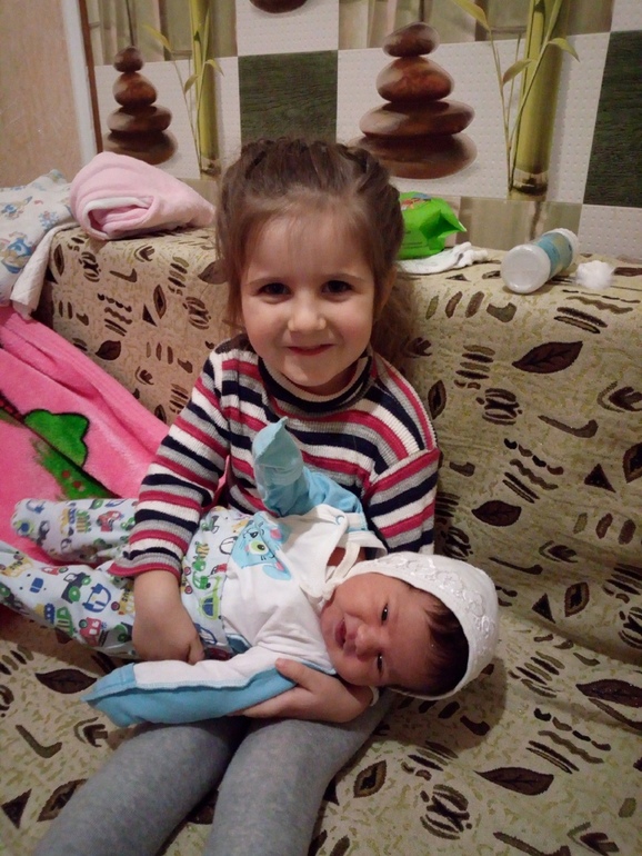 На попке у нее пятнышко есть..В роддоме детский врач сказала,что это родимое...А наш педиатр сказала,что это гемангиома...Пятнышко немного выросло и сильно покраснело..Теперь надо сьездить на консультацию к хирургу. Врач сказала наблюдать за ним..,чтоб не начало увеличиваться..Старшая дочка любит сестричку,помогает мне памперс менять,переодевать....только вот старшей не получается времени достаточно уделить т,к Адель или на руках или на сисе.