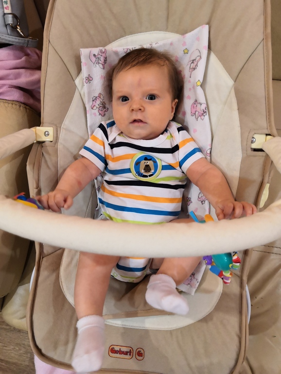 Днем большую часть времени Сёма спит. Очень хорошо меня спасает шезлонг, подвешиваю разные игрушки, и сынок может просидеть в нем минут 15-20 не просясь на ручки)) А иногда даже уснуть.