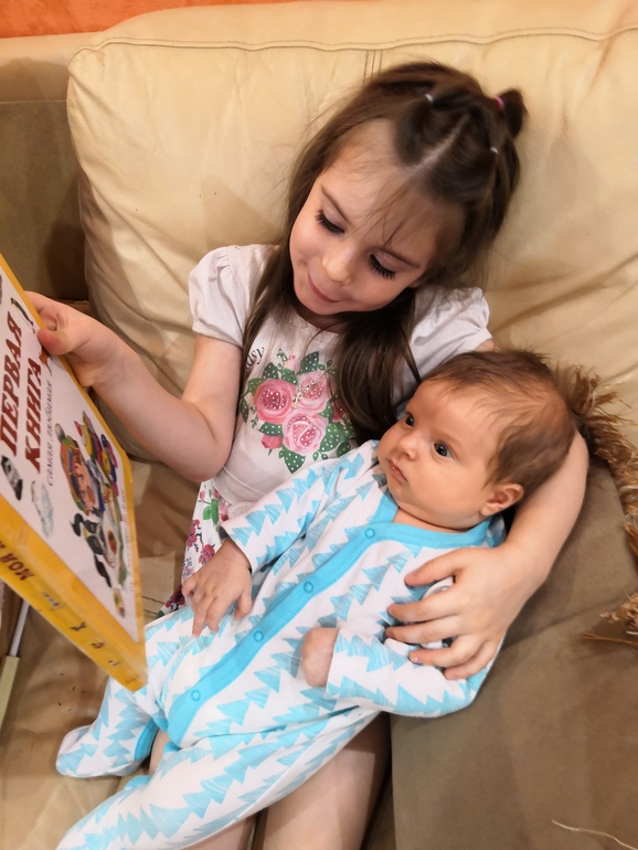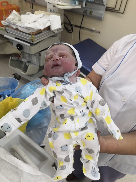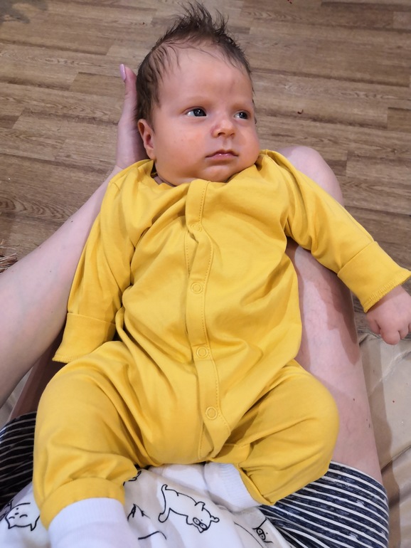 Вес 3530 гр, 54 см, 8/9 по Апгар. По сравнению с Марьяшей настоящий богатырь! Но внешне очень похожий на нее: