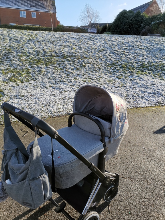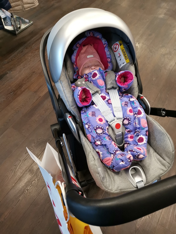 Ещё мы очень любим гулять, дышать свежим воздухом. И, если даже доча не спит, ведёт себя во время прогулки, спокойно и выглядит довольной 😀