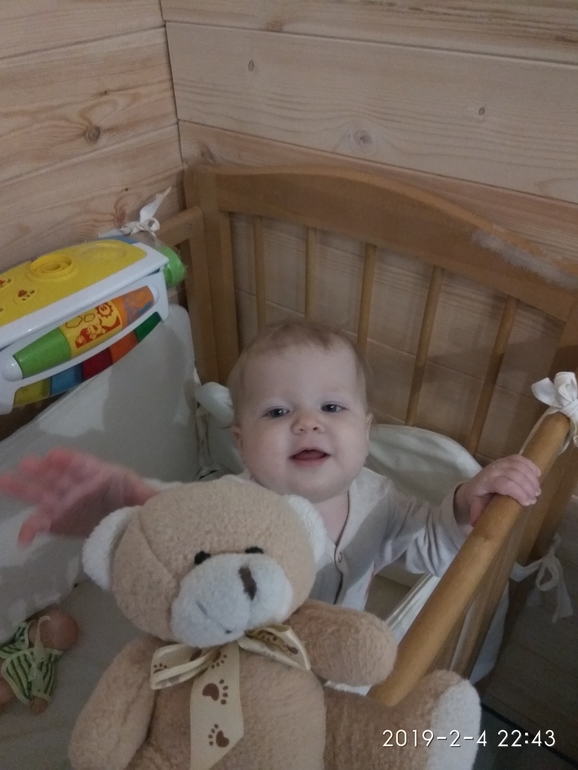 Начала прикалываться надо мной. Играем в кидалки (медведя туда-сюда перекидываем), она при этом визжит😊 И тут я отвернулась, слышу визг, Любаха стоит с поднятой рукой и улыбается (типа кинула мишку). Я начинаю его искать - нет нигде. Любаха ржет надо мной))) Потом наклоняется, берет медведя и мне показывает. Типа лошара ты, мам, вот же он😁 Любит все раскидывать по полу, а потом ходить поднимать. Любит сама переключать каналы ТВ. А вот всякие глазки-носики-ротики ее волнуют мало. Меня тоже, поэтому я ей не показываю и не объясняю пока все это. Вроде все...не знаю, что еще написать)))