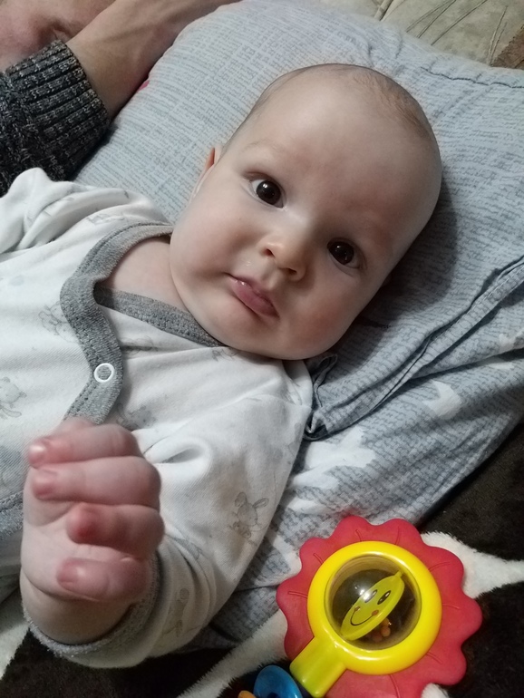 Вроде пока все думаю не долго нам осталось спокойных деньков увидела немного припухшую десну правда верхнюю,да и до ползания недалеко,так что мама держись!🤣🤣