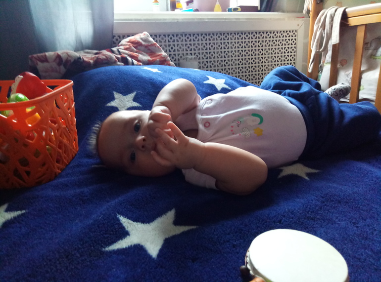 На спине лежать не хотят, на животе пыхтят и, как им кажется, активно двигаются. По факту - за полчаса могут проползти пять сантиметров или повернуться по кругу. Степа перемещается методом пускания слюней в одеяло и вышибания пыли лбом.
