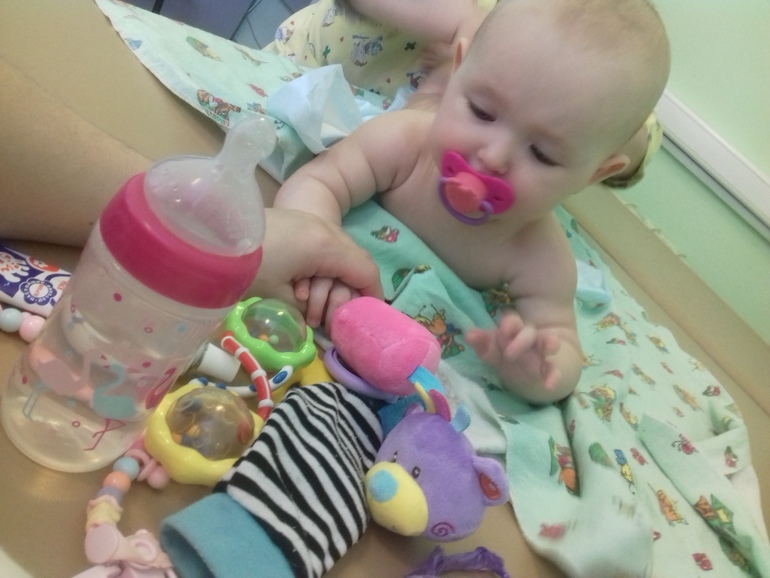 Прошло у нас уже 5 сеансов....и опа! мы почти поползли на четвереньках! Точнее ползём,но пока не уверено. Стоим на коленочках и любуемся на себя в зеркало.