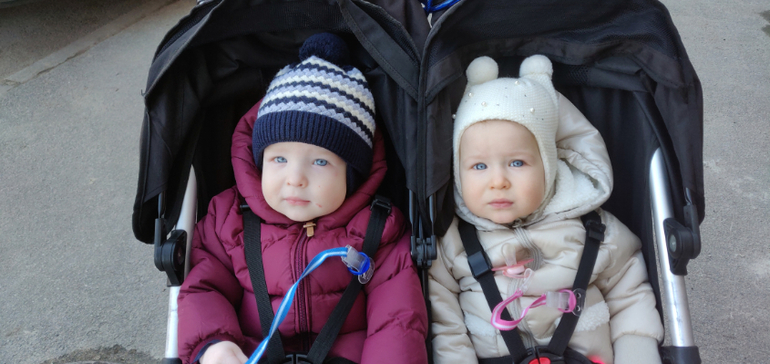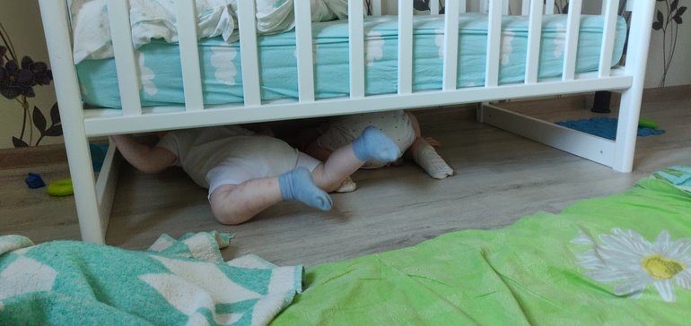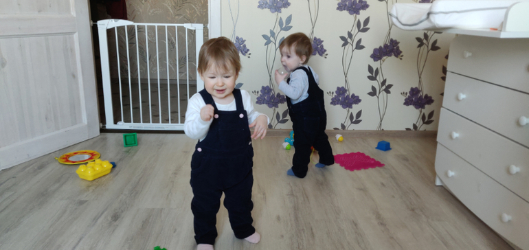 Из общих успехов - оба хорошо ходят по дому, на улице пока не очень получается.