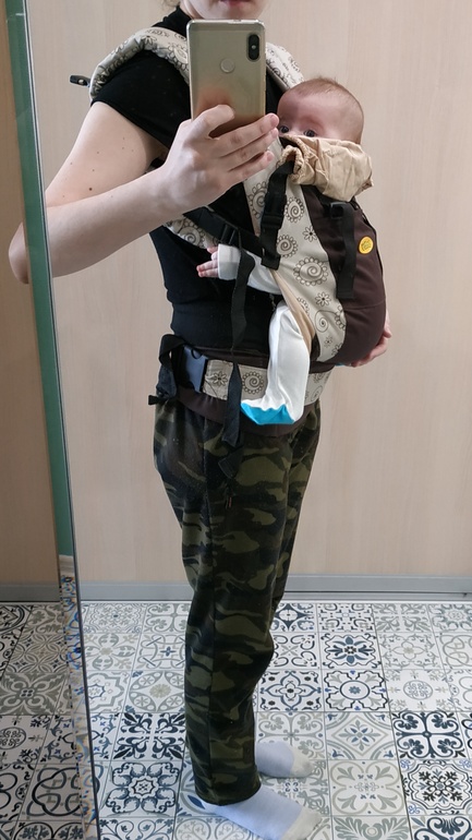 На прогулкеДевочки,кто разбирается в слингах,рюкзаках и т.д.Посмотрите фото,пожалуйста,скажите,правильно или нет ребенок расположен,можно ли его так носить?Возраст 4 месяца почти