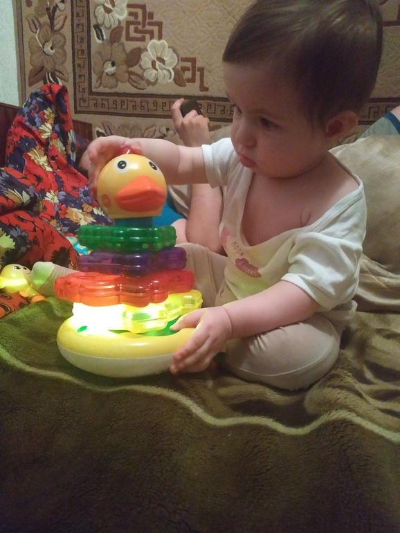 ❤️Купили дочке пирамидку, ведь "пора учиться собирать") Выбирала довольно интересную, сенсорную, светящуюся,музыкальную, с музыкой и сопровождающими снимание и одевание зверей звуками. Думала таким образом заинтересовать дочь, что бы вот прям только и делала, что занималась с этой штукой 😅