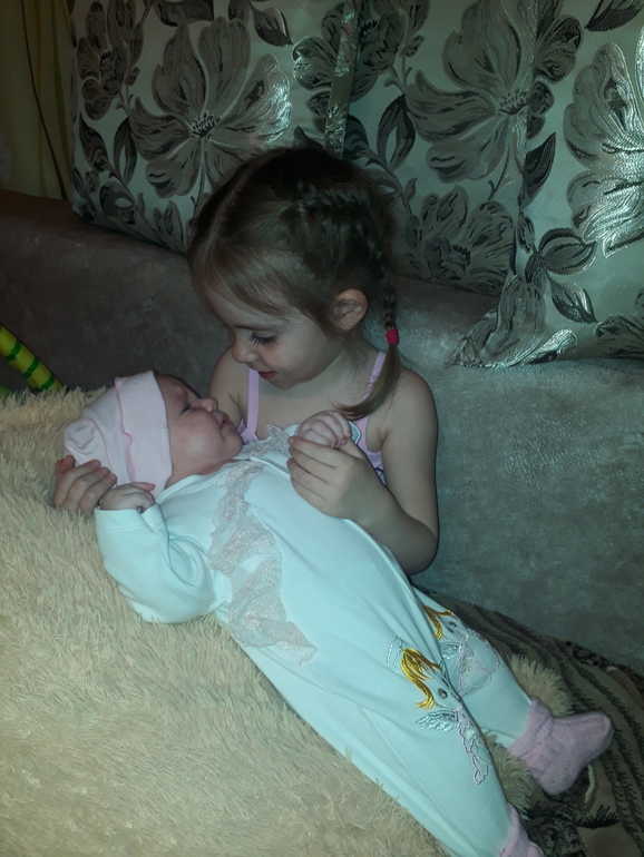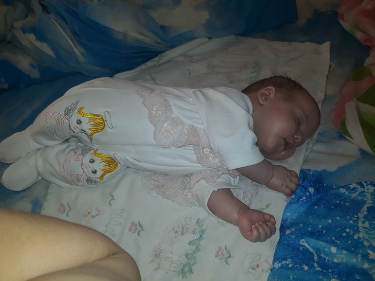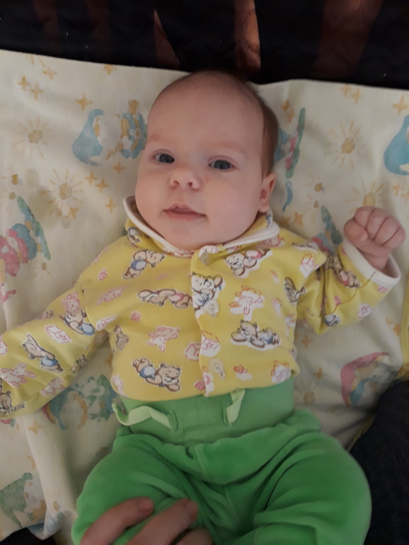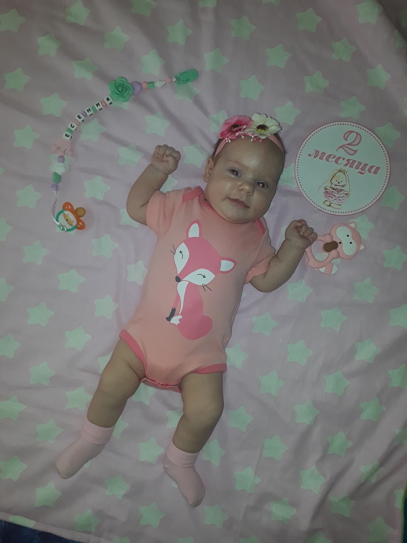 Ну а пока мы наслаждаемся каждым мгновением с нашей второй доченькой Есенией! Были на ФАПе 3 мая, весим уже 5804 (+1264г)кг и рост 57 (+3см). Огого! Догнали Василису,хотя родились меньше на 400г! Растем не по дням, а по часам!)) Из умелок: держим головку уже очень уверенно, но еще может закинуть назад, когда устает)) следим за игрушками, погремушками! Очень нравится нам мобиль! Совсем недавно научилась уже полностью осознанно улыбаться, улыбаемся всем, кто говорит с ней!