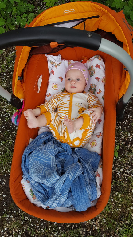 Так как к прогулке она часто просыпается, то гуляем бодрствующие. Ей нравится, она разглядывает улицу, чувствует солнышко и ветер. Иногда выходим с ней в слинге, но у меня пока спина быстро устает, так что нечасто. Бывает, привяжу ее в слинг дома. Так она довольно быстро засыпает (но просыпается, стоит ее оттуда вынуть).