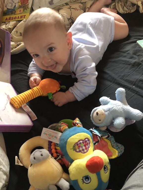 Ещё любит посмеяться , особенно если шепчу ему на ушко что-то )) ну и так смеётся часто - вся греческая семья постоянно развлекает )) безумно любит папу мужа - плачет, когда тот из комнаты выходит🤷♀️