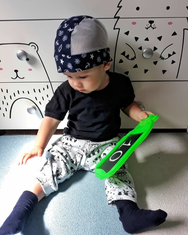 "Бубух" - бросает всё с кровати и говорит "бубу". Будет "бубукать", пока не повторишь😊 Когда гора игрушек заканчивается, в ход идут подушки🙈