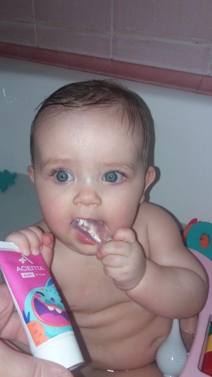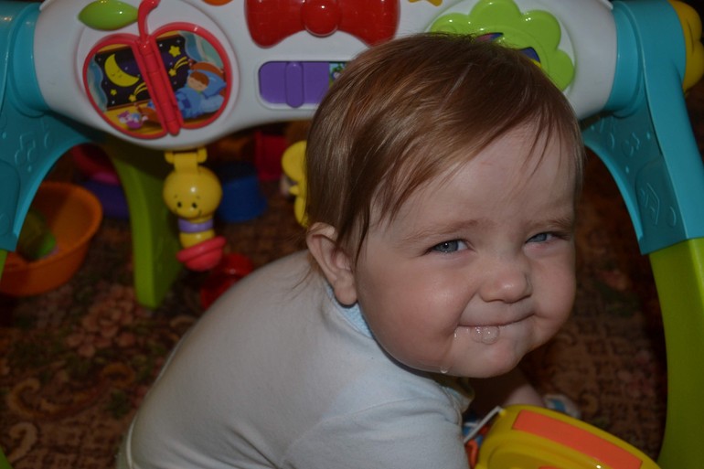 Вес, месяц назад с небольшим, был 12640, рост 79,5. У Алисы 10 зубов и 11, 12 нижние клыки уже на походе, десны воспалены на их месте. Зубки чистим с 8 месяцев, если даже не раньше, когда их было четыре штуки, я и озаботилась этим вопросом.