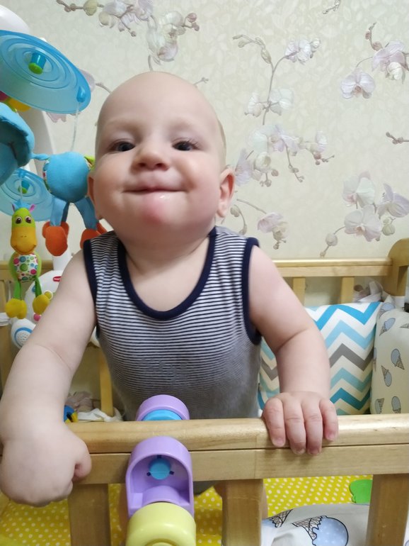 Голосом показывает огромный спектр эмоций, и мы теперь так общаемся) Он мне ау-ао, я ему ыы-аи. Ненавидит заставку сериала «Отчаянные домохозяйки», боится ее и прячет лицо, но с удовольствием смотрит малышариков, деревяшек (но не более 2 минут), с удовольствием слушает песенки из мультиков (включаю в яндекс-музыке)
