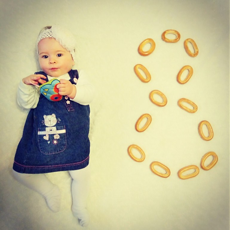 Отчёты по месяцамЗапоздалый пост о наших уже 8!месяцах🙂🙈 Ох как выросла моя малявочка, это очень заметно и по вещам и по умелкам, по повадкам. Уже проявляется характер, смотрит в глаза так выразительно , всё понимает. За этим так интересно наблюдать... Стараюсь больше снимать на видео сейчас. Колю мало снимала, в основном фотографировала и сейчас очень жалею. Так интересно пересматривать именно видео... Итак, о том как мы выросли и чему научились: весим 7 кг (+600 г за месяц), рост махнул аж на 4 см... 68 см сейчас ростик у Лизоньки. Вещи 68 размера становятся малы. Обновляем гардероб 74 размером. Кушаем сейчас много всего. Кашки молочные, творожок, ну овощи и фрукты это само собой, ввели мясо. Мяско зашло как то не очень... Может съесть с овощами грамм 40. И конечно продолжаем ГВ. Ночные кормления у нас так и продолжаются...и совместный сон тоже. Проблема состоит ещё и в том, что старшего не можем отучить приходить к нам под утро((места всем на одной кровати катострофически нехватает😩 Надо уже что то с этим делать... И про наши умелки. Сааамое основное это то, что Лиза наконец то научилась ползать👏👏👏Только недавно переживала, что всё никак переворачиваться не научится (или не хочет) а уже эта шилопопная девочка вертится и крутится как юла и очень у неё это ловко выходит 😊так ещё теперь мы и ползём до намеченной цели (часто это игрушки брата, ох как любим мы в них поиграть 🤭или пуууульт/телефон😀). Отдельная любовь у нас сейчас к кискам. Когда в поле зрения появляется наша Кесси или бабушкина Соня у дочи стоооолько счастья. Мне кажется первое слово тоже будет "Киса" 😀Все эмоции мы сейчас очень выразительно проявляем. Очень любит доченька покричать. Кричит так громко, что порой удивляет от куда в такой маленькой девочке на только громкий голос. Прям кричит))))) Нравится стучать игрушками или рукой по игрушкам. И ногами кстати тоже постучать любим))) Любит ручками перебирать что то мелкое. Вообще мелкая моторика уже у неё начала развиваться. Любит передвигать маленькие колечки на игрушке, кнопочки пальчиком нажимать. Привлекают её именно такие маленькие детальки. Ох, много уже мама написала... Хочется ничего не упустить, не забыть, чтобы все эти моменты запомнились на долго. Вообще очень время быстро идёт. Удивляюсь когда Коля успел вырасти... Так грустно иногда, что он уже не будет таким маленьким😞Да и Лиза не успеешь глазом моргнуть уже бегать будет)) Но такова жизнь. Детки растут и по другому быть не может 🙂Впереди ещё много всего интересного. Сколько всего ещё предстоит узнать... Сколькому научиться. 🤗 Ну и наши 8 месячные фото