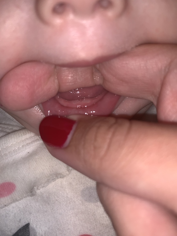 Три дня из такого состояния появился только край один, на пятый полностью полоса вылезла и все....... Жду дальше движения уже неделю так и не лезет дальше 😕но у нее и полезли поздно 9.5 мес. А у всех знакомых в 5-6 первые прорезались. Терпения сил вам😀