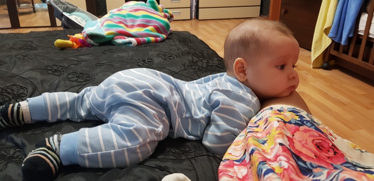 Что Мы научились к шести месяцам :вчера Костя пополз по пластунски,Как раненый солдат. Постоянно пытается сесть,ну правильно так обзор то лучше)))