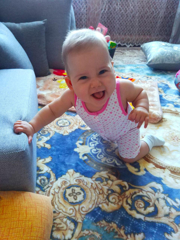 Я сама была не такая "ранняя", толстенькая, ленивая) Не ползала, толком не сидела, заваливалась набок) А потом с горем пополам зацепилась за плед на диване, встала... И ходила как бабуся с коромыслом)) Отклячив попу назад)) А дочка вот такая!) Активничает. Сидеть - не наш конёк. Мы ещё сами не сели. Но уже пытаемся стоять.🤦🤦🤦
