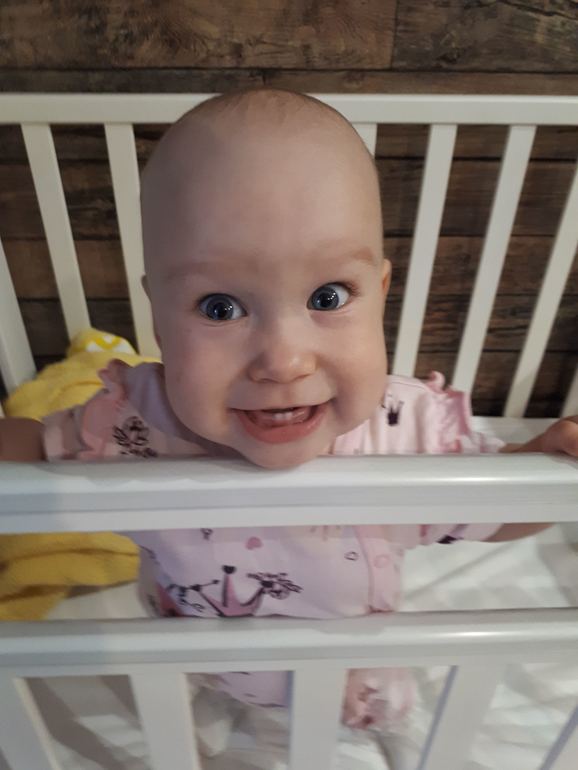 На подходе еще 2 зуба, один уже прорезался, второй только только рвет десну. По итогу у нас на 9 месяцев 6 зубов (с теми что режутся). Эти зубки идут плохо, тревожат, плохо спит, плачет во сне, просыпается, радует что без температуры.