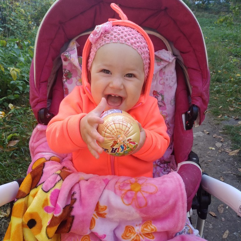 10 700кг 78 см, рост в папу наверное😊 За месяц мало изменений,6 зубов,стоит у опоры,ходит у опоры,начала отпускать ручки и стоять несколько секунд буквально,ползает по всему дому,во все шкафы,ящики лезет.Сделали три прививки Пентаксима,все без реакции слава богу.Перестала говорить мама,теперь только папа,дядя,дай,сись,ну и по своему.Знает уже все вокруг ,на все,что не спроси пальчиком показывает.Телефон к уху прикладывает,расческой расчесывается,ложку взяла ,а она на мультиварку показывает,заколку на голову,носки на ноги,вообщем умничка моя😊 скоро годик,не верю еще.А так мамина еще та,спит не очень,все время сисю в рот надо,днем только в коляске,ночью со мной.Кушаем каши,сама варю уже,пюре овощные с мясом или рыбой,молочку,фруктовые пюре,печеньки,хлеб...Любит играть ку ку,догонялки😂 11,5 месяцев научилась слазить с кровати уже не головой вниз😀