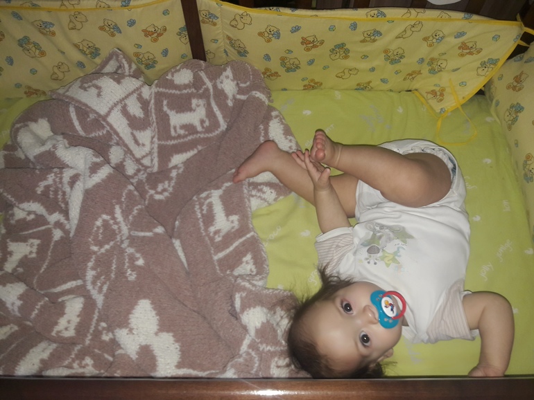 Ну ладно, вернёмся к умелкам: в 5 месяцев 14 дней встал на четвереньки. Сейчас уже хочет встатьна ноги, причем без опоры - встает на четвереньки, потом на стопы и выпрямяет ноги, при этом опираясь руками об пол - смешно получается. Пытается сесть, но пока не получается.